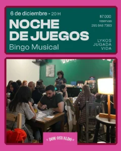 La barra de juegos de Lykos sigue girando por el Don Osvaldo. Arrancamos a la tardecita y te podes quedar a cenar en el bar.